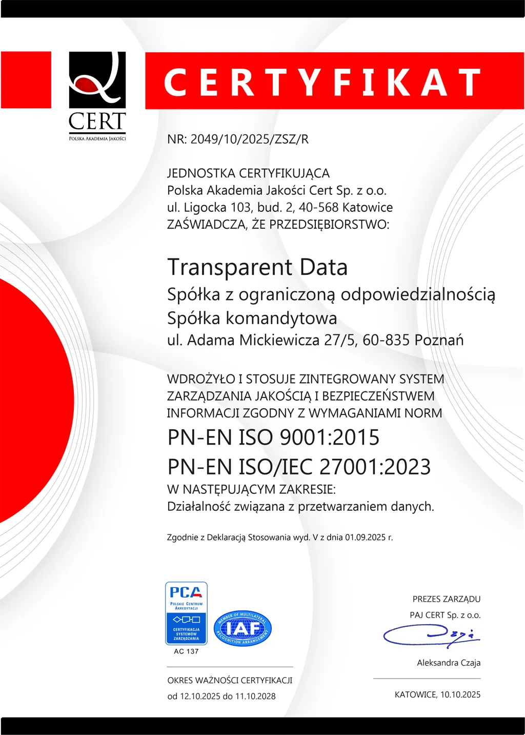 Poza Transparent Data, częścią Kaczmarski Group są także m.in. największe krajowe biuro informacji gospodarczej KRD BIG S.A., Easycheck, ChronPESEL.pl, Kaczmarski Inkasso, Fakturatka.pl.